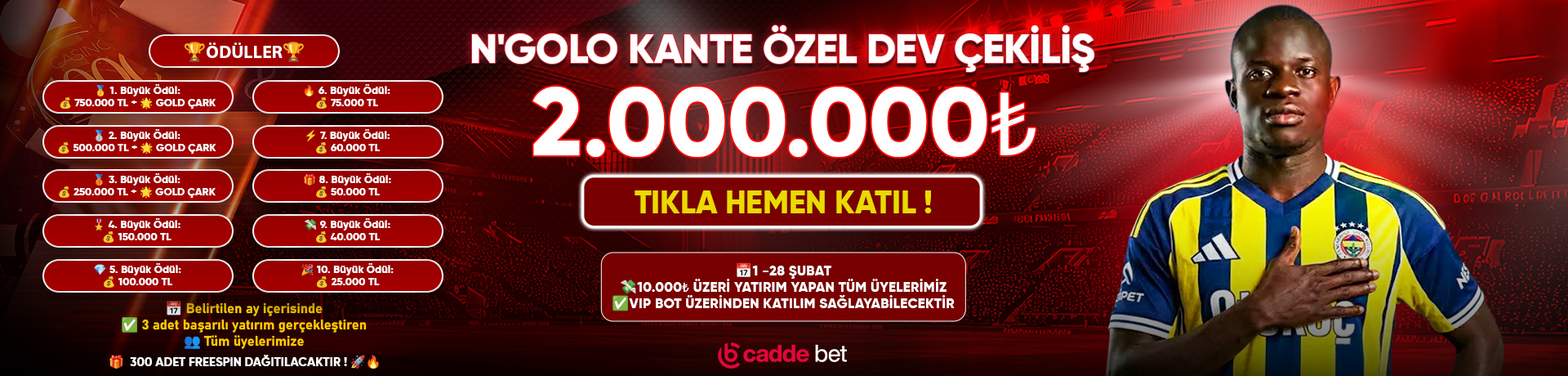 Caddebet'deki promosyonlara bayılıyoruz ve çok sayıda teklif sunuyoruz ve bu da kendimizi diğer bahis sitelerinden ayırt etmemize yardımcı oluyor.Tek yapmanız gereken favori takimlariniza bahislerinizi yapmak ve arkanıza yaslanıp kazandıklarını izlemek.